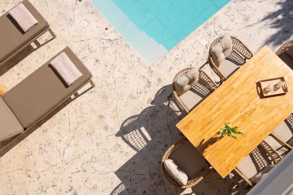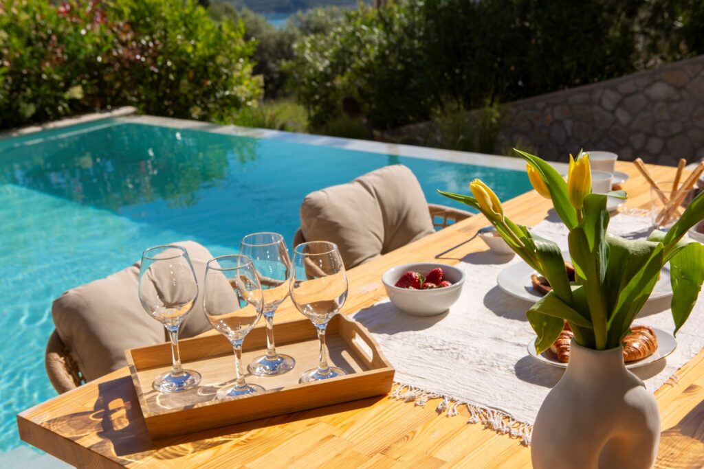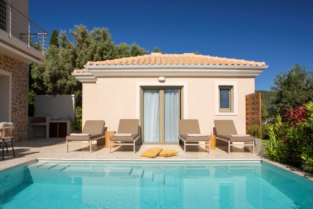 The outdoor space has a swimming pool with hydromassage, bbq area, wifi.